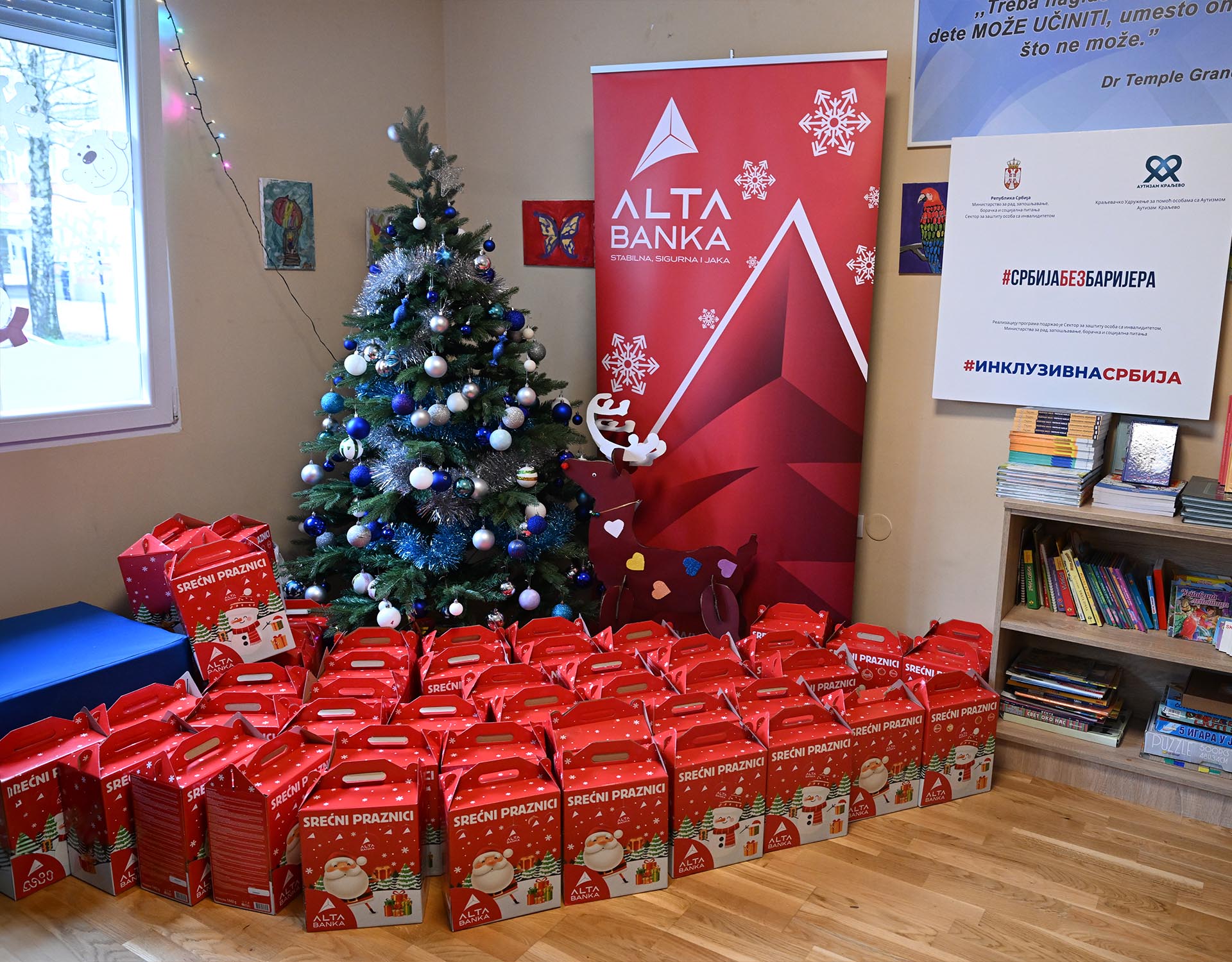 Otvaranje poslovnice obeleženo je gestom koji je uneo toplinu u praznične dane. Tim ALTA banke posetio je Dnevni centar za decu i omladinu u Kraljevu, gde su mališane dočekali osmesi i radost. Deda Mraz je stigao sa paketićima koje su brižno pripremili zaposleni, a deca su uživala u trenucima koje će pamtiti. Banka je poklonila i knjige za biblioteku centra, kao znak podrške obrazovanju i razvoju kreativnosti. Akcija je kao deo programa ‘Za grad koji se voli’ realizovana u saradnji sa Centrom “Inkluzivna Srbija” i Ministarstvom za rad, zapošljavanje, boračka i socijalna pitanja.