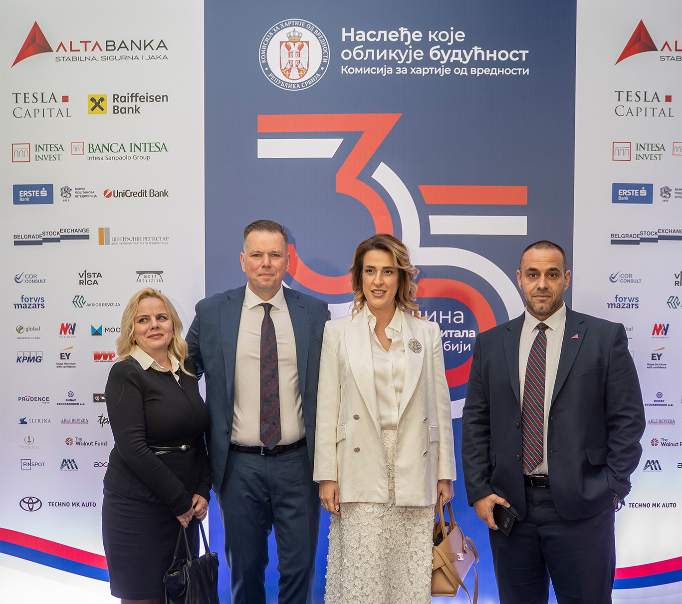 ALTA banci ukazana je čast da bude glavni pokrovitelj svečanosti povodom 35 godina postojanja i razvoja tržišta kapitala u Srbiji. Proslava jubileja održana je juče 2. oktobra u Belom dvoru uz prisustvo predstavnika institucija, regulatornih tela, kompanija, investitora i stručne javnosti, kako iz Srbije, tako i iz inostranstva.